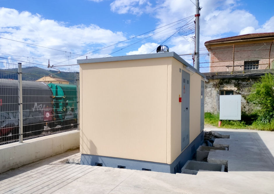 Allestite a partire da prefabbricati in cemento e dotate di sistema completo di trasformazione elettrica (QMT, Trasformatore, QBT, Rifasamento, Q.AUX e Supervisione)